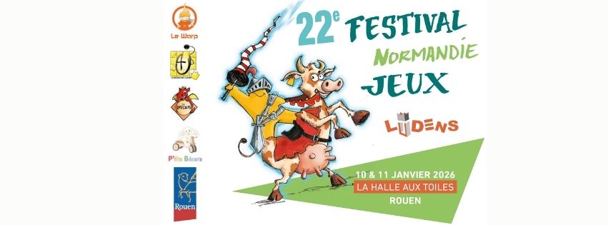 Le 22e festival Normandie Jeux à Rouen à la Halle aux Toiles les samedi 11 (10h - 23h) et dimanche 12 janvier 2026 (10h - 18h)